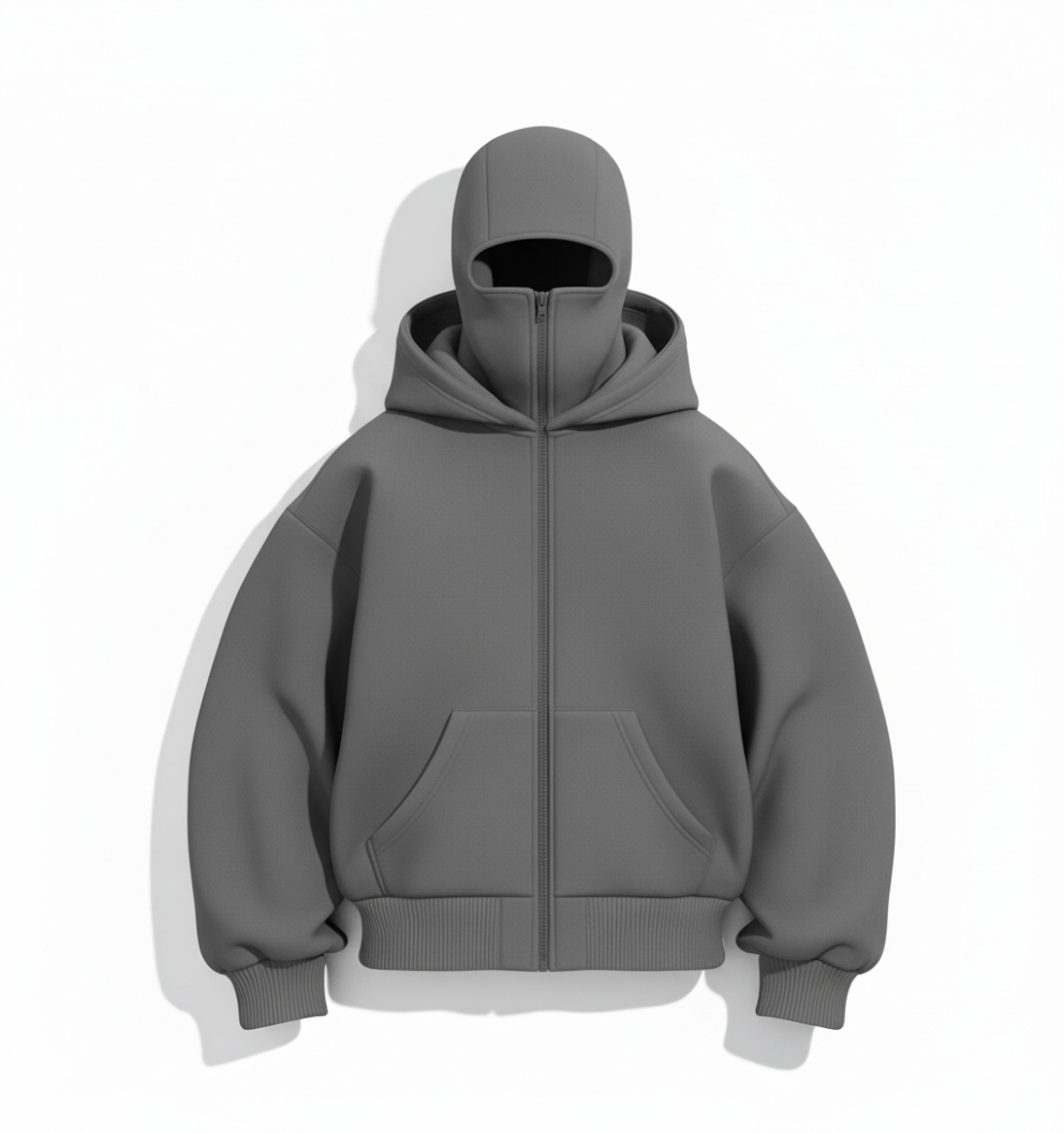Engineered for the uncompromising demands of the urban landscape, the Stealth Mode Balaclava Zip-Up redefines modern streetwear. Forget basic hoodies—this is a structure of comfort, warmth, and deliberate attitude, seamlessly merging the extreme warmth of a winter jacket with the essential comfort of cotton fleece.